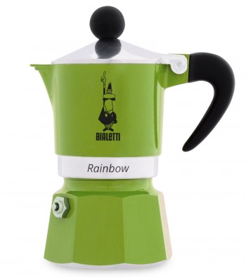 Classic espresso coffee maker model Rainbow Green. Lively colours for a moka pot combining modern design and outstanding performance. Made of aluminum, it is ideal for preparing real Italian...