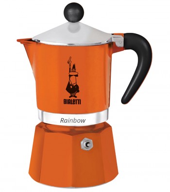 Classic espresso coffee maker model Rainbow Orange. Lively colours for a moka pot combining modern design and outstanding performance. Made of aluminum, it is ideal for preparing real Italian...