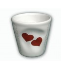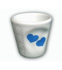 Shot for coffee with hearts decoration. The Top Moka glasses have the great merit of originality and the colours typical brightness which characterizes the Top Moka Brand. Fashioned with a "squeezing" effect that mimics paper cups; made of fine porcelain and with an ergonomic grip, take up a totally new look for a coffee cup, modern and funny, with the possibility to use it in a thousand different ways. 6x6 cm Yellow/White