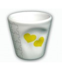 Shot for coffee with hearts decoration. The Top Moka glasses have the great merit of originality and the colours typical brightness which characterizes the Top Moka Brand. Fashioned with a "squeezing" effect that mimics paper cups; made of fine porcelain and with an ergonomic grip, take up a totally new look for a coffee cup, modern and funny, with the possibility to use it in a thousand different ways. 6x6 cm Red/White