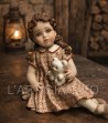 Questa raffinata bambola in porcellana cattura la tenerezza dell’infanzia in un oggetto dal gusto intramontabile. La bambina è ritratta seduta, con lo sguardo leggermente rivolto verso l’alto, mentre stringe tra le mani un piccolo orsetto, dettaglio che aggiunge calore e narrazione alla scena.