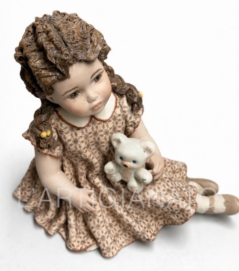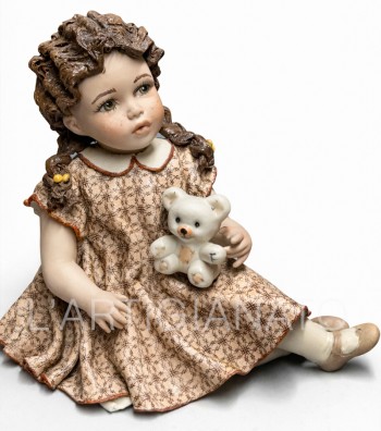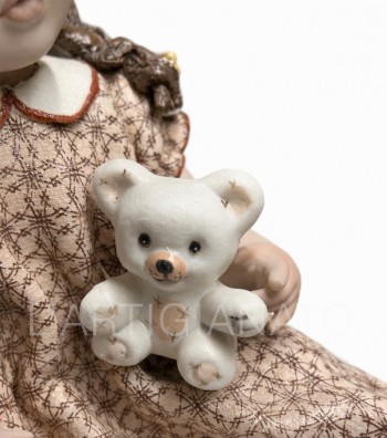 Bambola con orsetto in porcellana da collezione