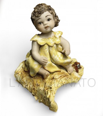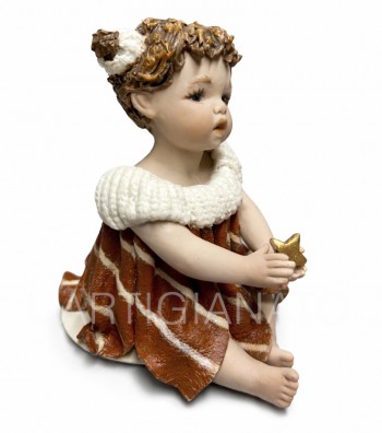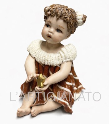 Bambola in porcellana da collezione raffigurante una tenera bimba seduta con una stellina dorata tra le mani. Curata nei minimi dettagli, presenta capelli raccolti, espressione dolce e abito nei...