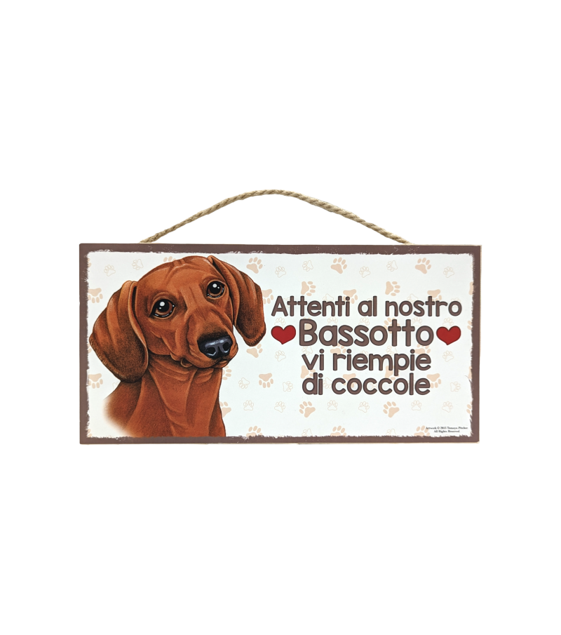 Maxim - Targa in legno con cordoncino modello Bassotto
