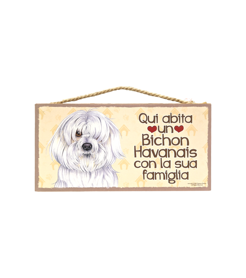 Maxim - Targa in legno con cordoncino modello Bichon havanais
