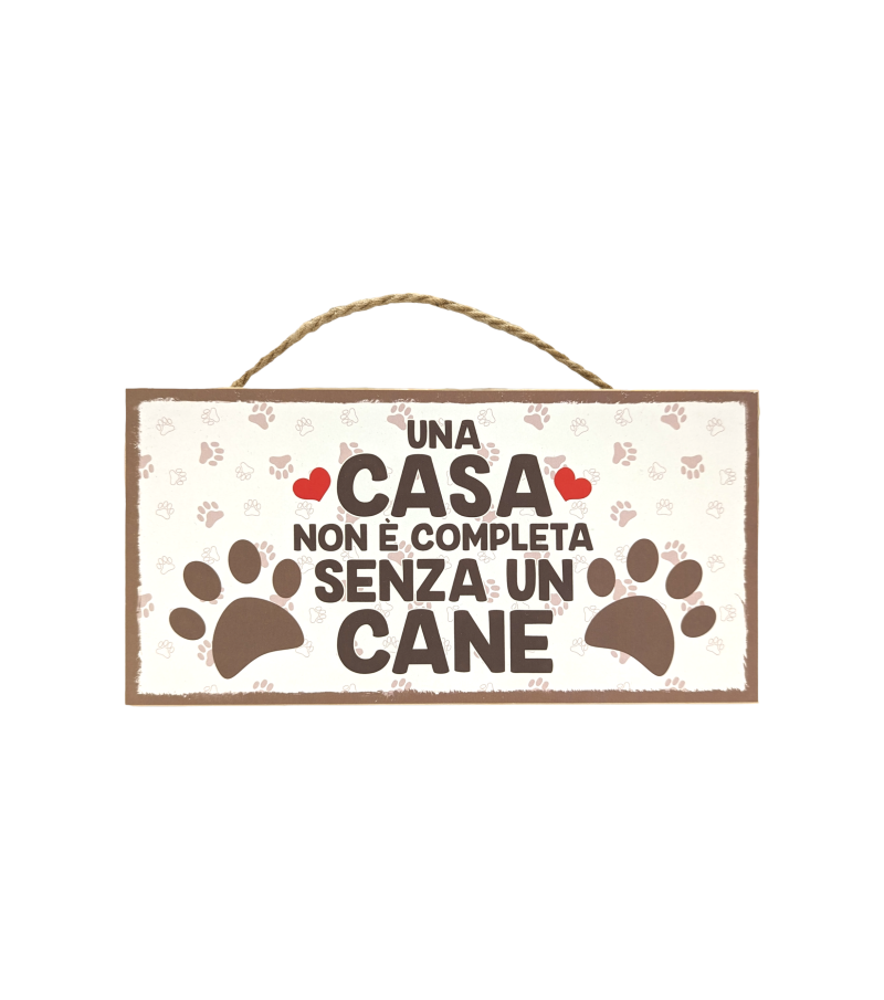 Targa in legno con cordoncino "Una casa non è completa senza un cane"